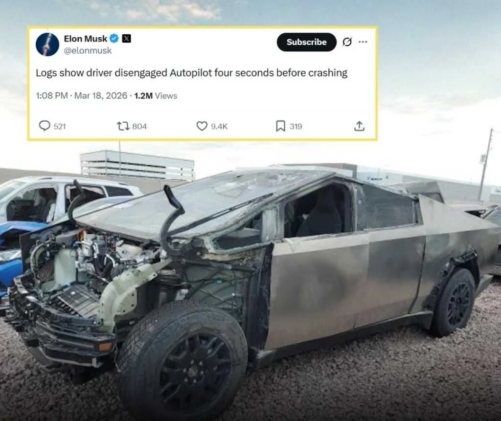 Elon Musk Says Tesla Cybertruck Crashed Because Driver Disabled Autopilot 4 Seconds Before Impact