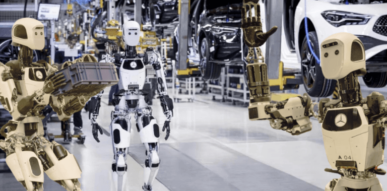 Mercedes-Benz က ကားထုတ်လုပ်မှု မြန်ဆန်စေဖို့နဲ့ အလုပ်သမား ရှားပါးမှု ပြဿနာကို ဖြေရှင်းဖို့ လူတူစက်ရုပ်တွေကို ကားထုတ်လုပ်တဲ့ စက်ရုံတွေမှာ အသုံးပြုနေပါတယ်။ ကုမ္ပဏီက တက္ကဆပ် အခြေစိုက် စက်ရုပ် ကုမ္ပဏီ Apptronik မှာ ဒေါ်လာ သန်းပေါင်းများစွာ ရင်းနှီးမြှပ်နှံထားပါတယ်။