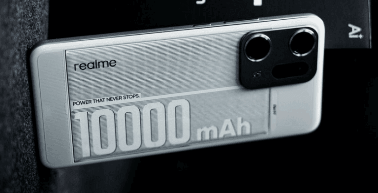 realme က မျှဝေထားတဲ့ ဓါတ်ပုံမှာ အဲဒီဖုန်းရဲ့ အနောက်ဘက်မှာ 10,000mAh ကို စာလုံးကြီးကြီးနဲ့ ရေးသားထားပြီး “Power That Never Stops” စာသားကို ထည့်သွင်းထားပါတယ်။ အနောက်ဘက်မှာ ကင်မရာ ၂ လုံး တပ်ဆင်ထားနိုင်ပါတယ်။