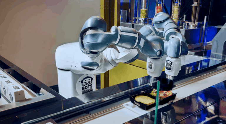 ကယ်လီဖိုးနီးယား Los Gatos မှ စက်ရုပ် စားသောက်ဆိုင်အသစ်ကို ABB Robotics နဲ့ BurgerBots တို့ ပူးပေါင်း တည်ထောင်ထားတာ ဖြစ်ပြီး ဟမ်ဘာဂါ ပြုလုပ်ပေးတဲ့ စက်ရုပ်တွေ ထားရှိထားပါတယ်။ စက်ရုပ်တွေကို အရွယ်အစား သေးငယ်ကျစ်လစ်တဲ့ မီးဖိုချောင်မှာ ထားရှိပေးထားပါတယ်။