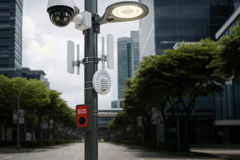 နည်းပညာမျိုးစုံကို သပ်ရပ်လှပတဲ့ မီးတိုင်တစ်တိုင်တည်းမှာ ပေါင်းစပ်ထားတဲ့ “စမတ် လမ်းမီးတိုင်တွေ” ကို စင်ကာပူ က တည်ဆောက်ထားပါတယ်။