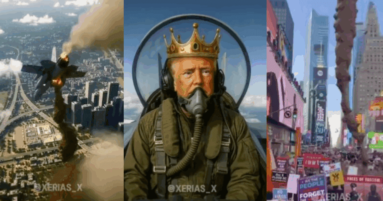 သမ္မတ Donald Trump က စနေနေ့မှာ သူတိုက်လေယာဉ်တစ်စီးပေါ်ကနေ အမေရိကန် ဆန္ဒပြသူတွေအပေါ် မစင်လို့ ယူဆရတဲ့အရာတွေ ကြဲချနေပုံဖော်ထားတဲ့ AI ဗီဒီယိုတစ်ခုကို ပို့စ်တင်ခဲ့ပါတယ်။